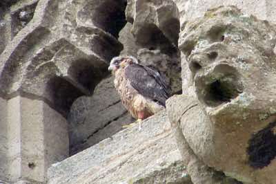 Things now moved apace. By 6 July, one of the juveniles was regularly seen on the parapet exercising its wings, with another looking through the castellations. The third hadn’t been seen at this point, but all three kept up a constant, monotonous screeching, their appetites insatiable.