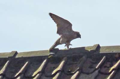Meanwhile, the other two siblings were honing their flying skills and on 14 July, one of them made its first kill, which it dumped unceremoniously on the roof of the nave before starting the messy business of plucking. Its brother was in close attendance, but the spoil wasn’t for sharing and it was eventually dragged over the apex of the roof and out of site.