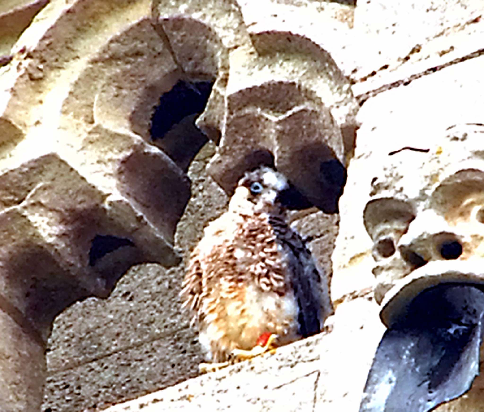 First photo of one of the juveniles, taken from the garden. On the south walkway.