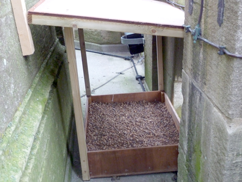 Following last year's catastrophe, we have provided a roof for the nest tray that shoukld provide some protection for the birds during inclement weather.