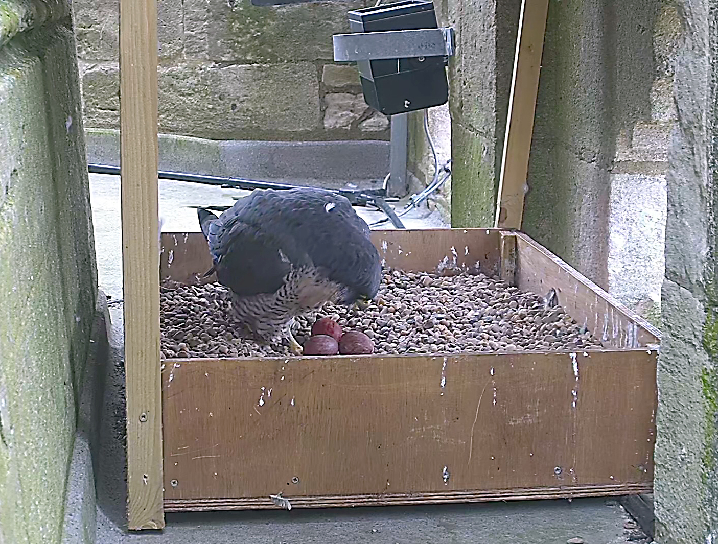 First egg this afternoon at 16.15. She incubated until 19.03, then left. Expect the second in a couple of days. Keep watching and buy our book, or donate to the Lincs Bird Club who paid for the views you are now seeing!