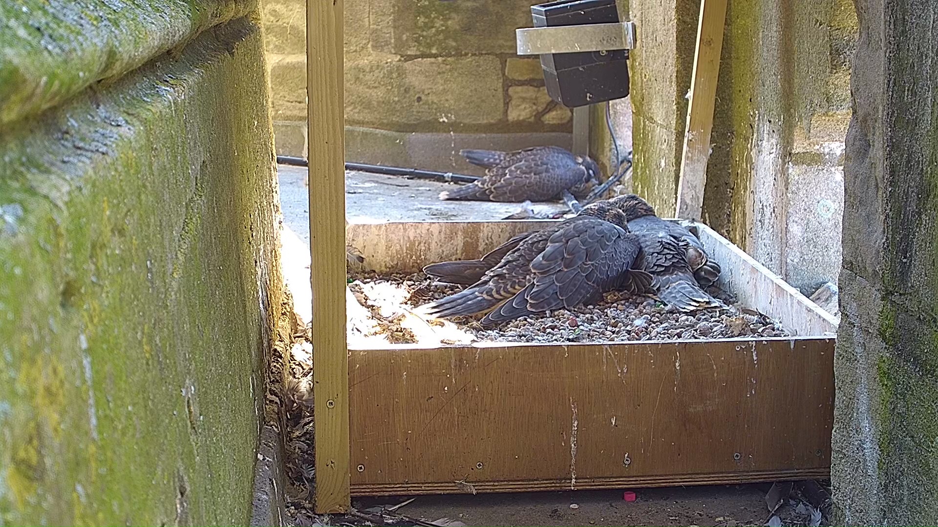 The remaining Juvenile (PAN) was seen flying well yesterday, though they do like to return to the tower for a siesta! With all four on the wing, it's been a successful season.