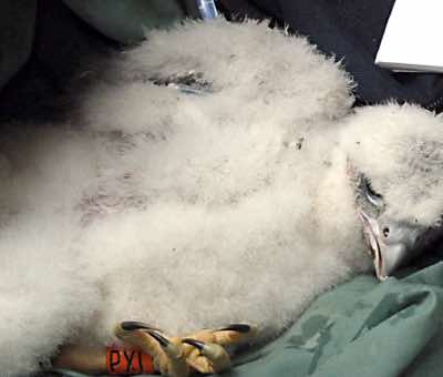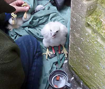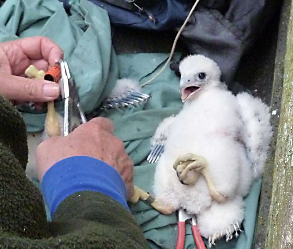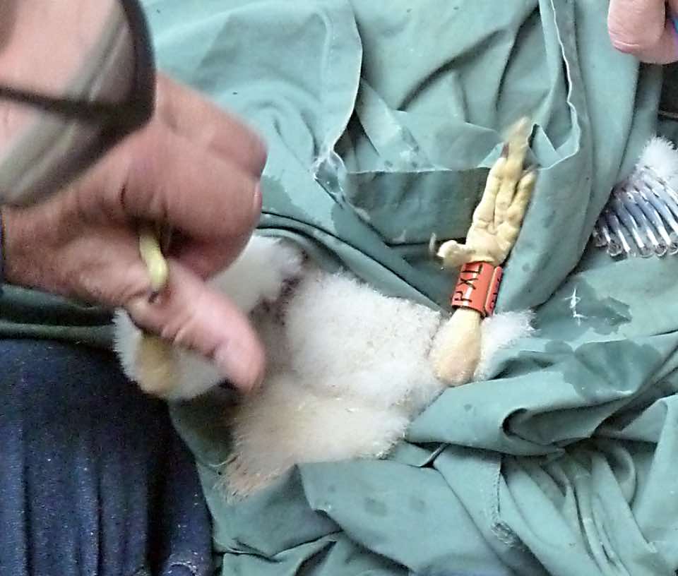 The chick were ringed this morning. 3 girls (ring codes: PXL, PZL, PAN) and a boy (PBN). All were healthy and well-fed.