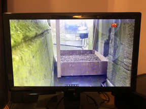 A long 10-hour slog by the Wildlife Windows lads has given us our first webcam! This will supplement the video to the TV in the coffee shop. We have two cameras, a fixed focus one pointing along the east walkway (useful when the juveniles leave the nest) and a zoom camera aimed at the nest tray. There is also the ability to have a split screen, where both cameras are viewable.
