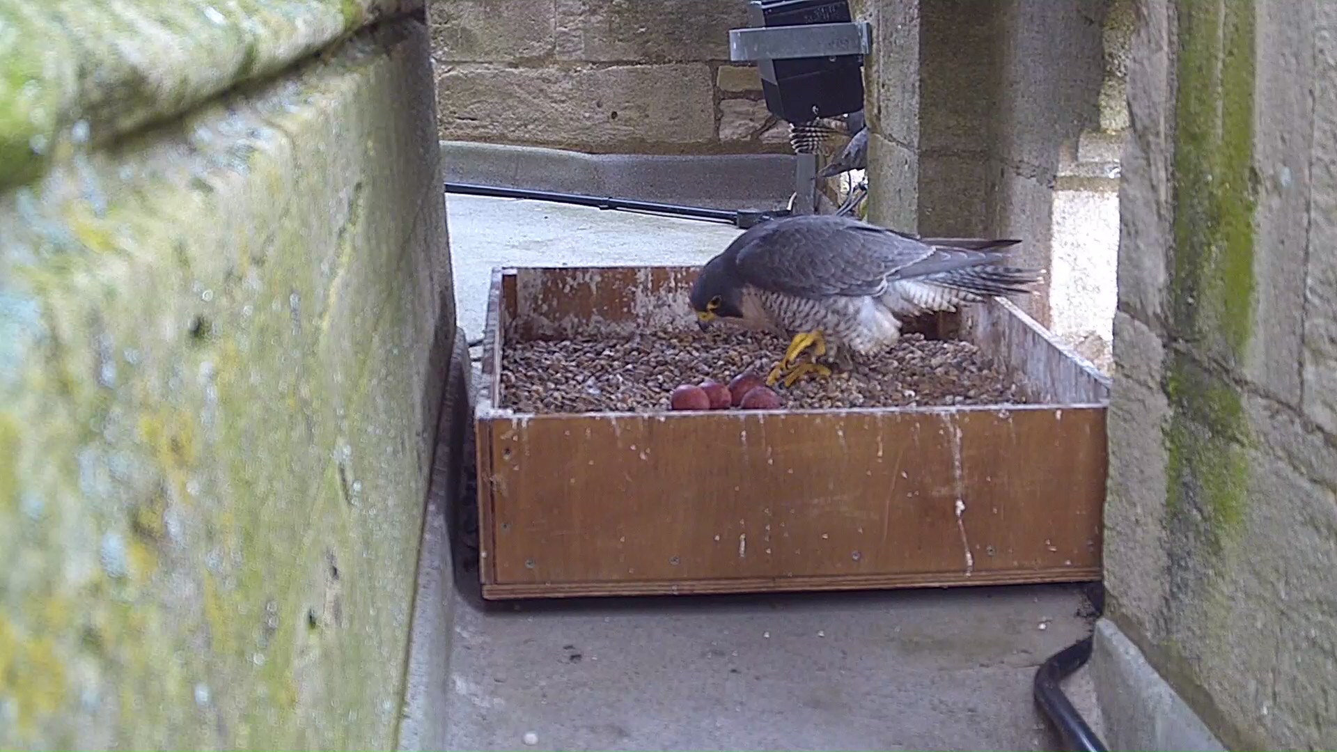Not much to report. The pair are incubating the four eggs, typically swapping duties five times in a 24-hour period, with the female taking the long nightime shift from around 6pm to 5am. Video below is of a changeover on 29 April. First hatching expected 10-12 May