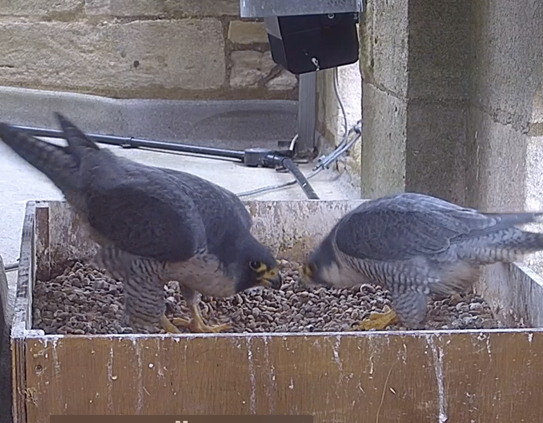 The peregrine pair flew around us complaining while we worked, so expect movement on the nest soon. Live-streaming to follow sometime in March.