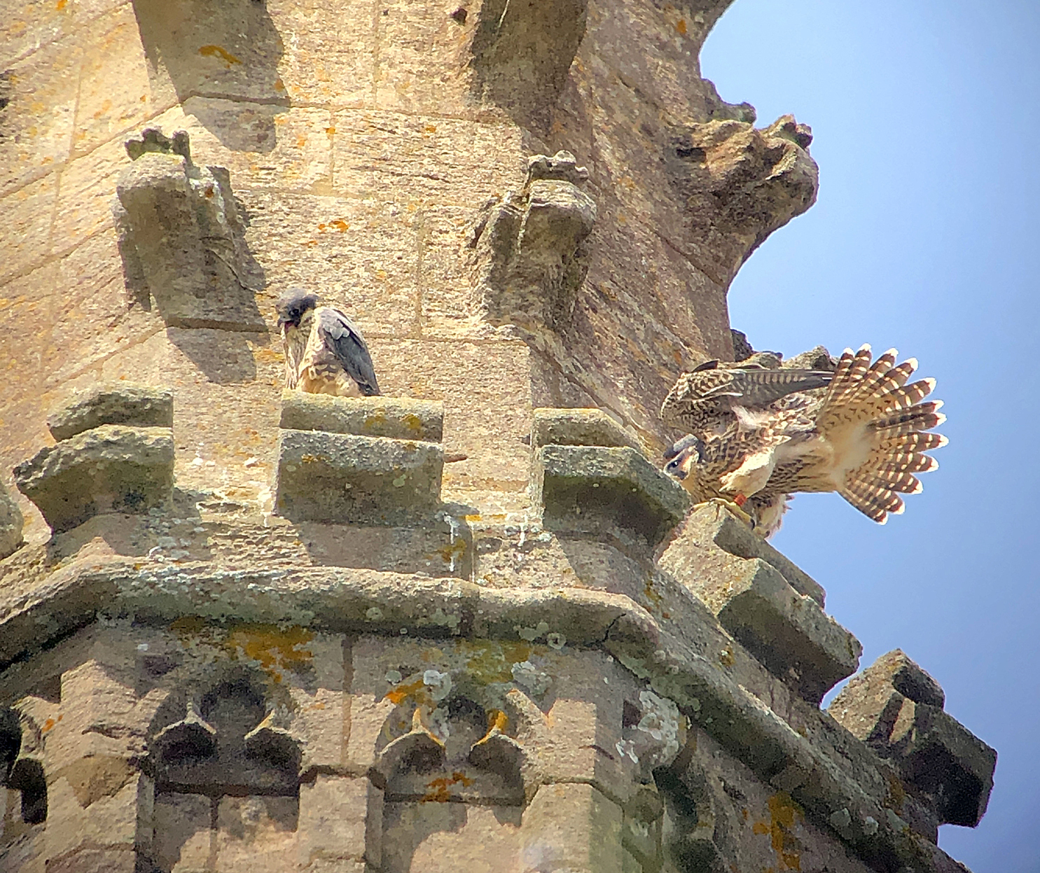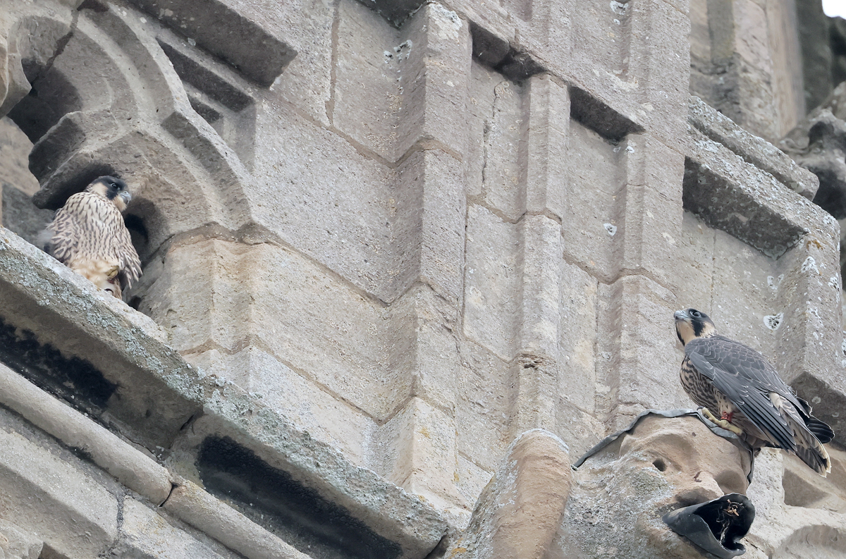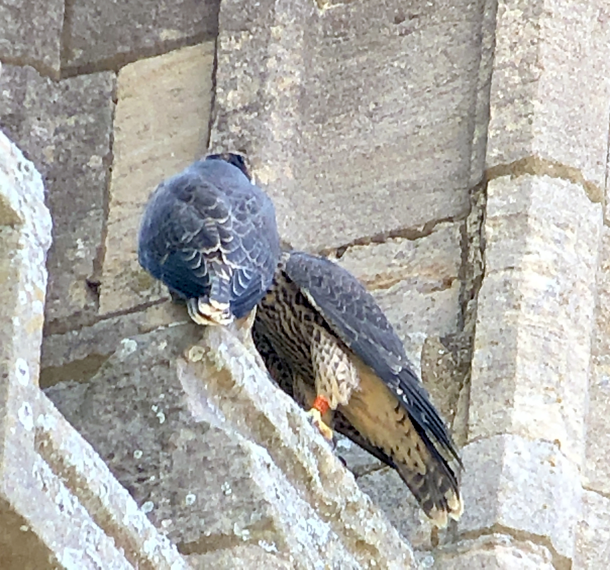 Juvenile VRF fledged this evening, Currently on the nave roof.