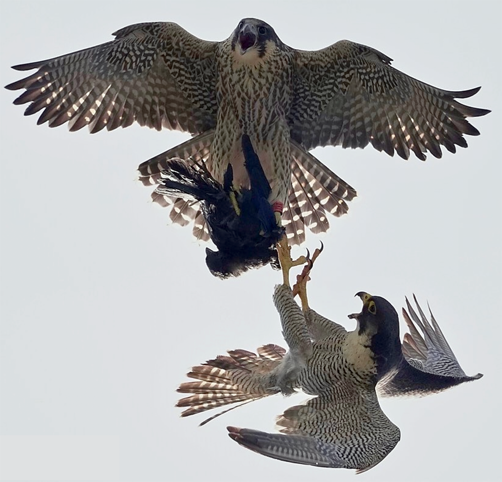 Food pass between the adult male (lower bird) and a juvenile – Photo courtesy of Colin Lea