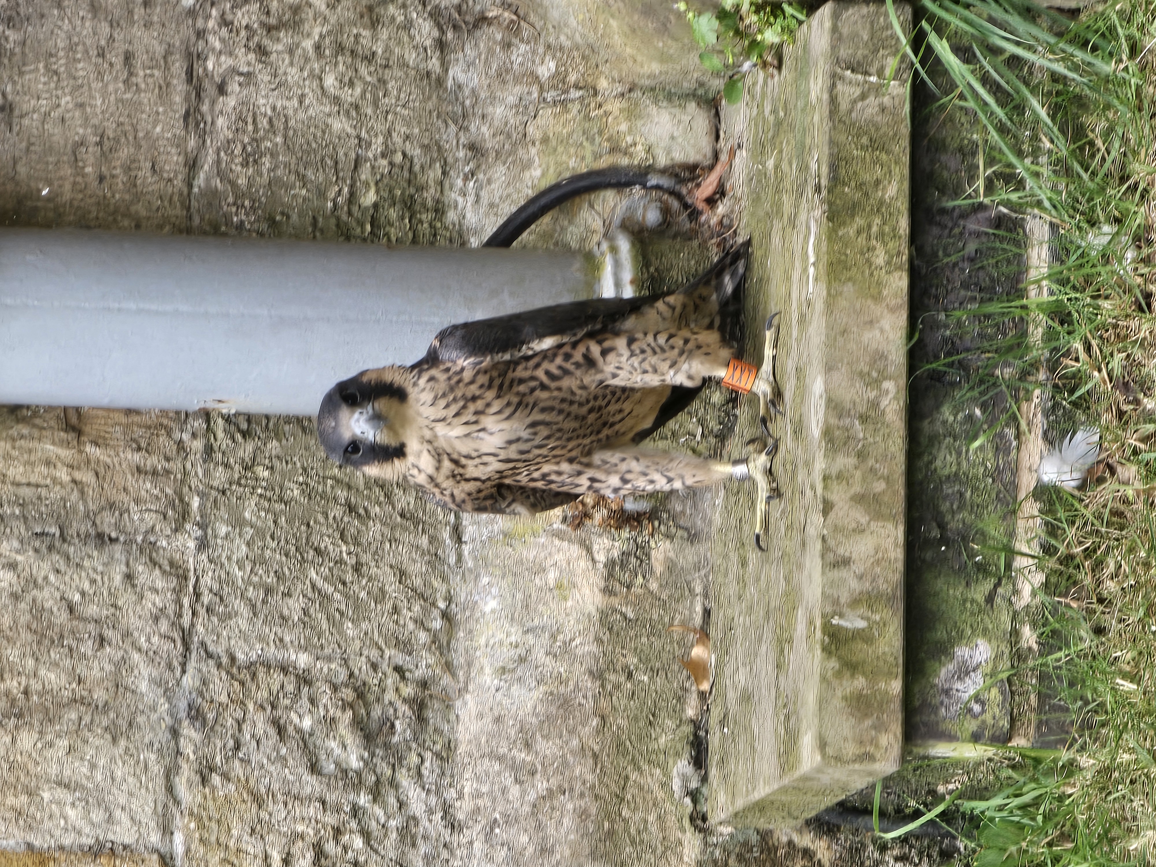 An unusual occurance. Juvenile XTT attacked a pair of woodpigeons that were nesting on a gargoyle on the south aisle of the church. After a tussle, XTT killed one of the pigeons, dragged it up the aisle roof and proceeded to pluck it. I've never seen a peregrine go for a sitting pigeon. Later, the surviving pigeon returned alone to nesting duties.