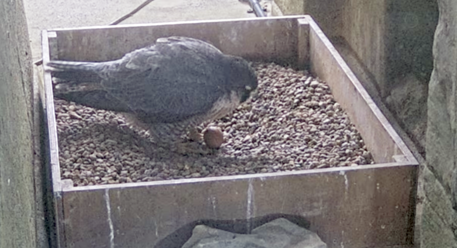 05.54 this morning. Grainy video of the pair mating on a gargoyle on the north side, after the female spent much of the night sleeping on the nest.