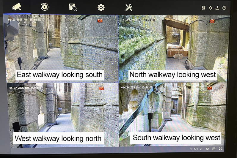 The nest tray was put in place today. Also, all the cameras have been installed, including the live-stream to the church coffee shop and a new camera monitoring the south walkway (previously hidden from view). This camera was paid for by Mike Tarrant and Julia Mullett, in memory of Julia's brother Barry Clarkson, an acomplished bird-watcher, who passed away suddenly on 26 December 2023.
